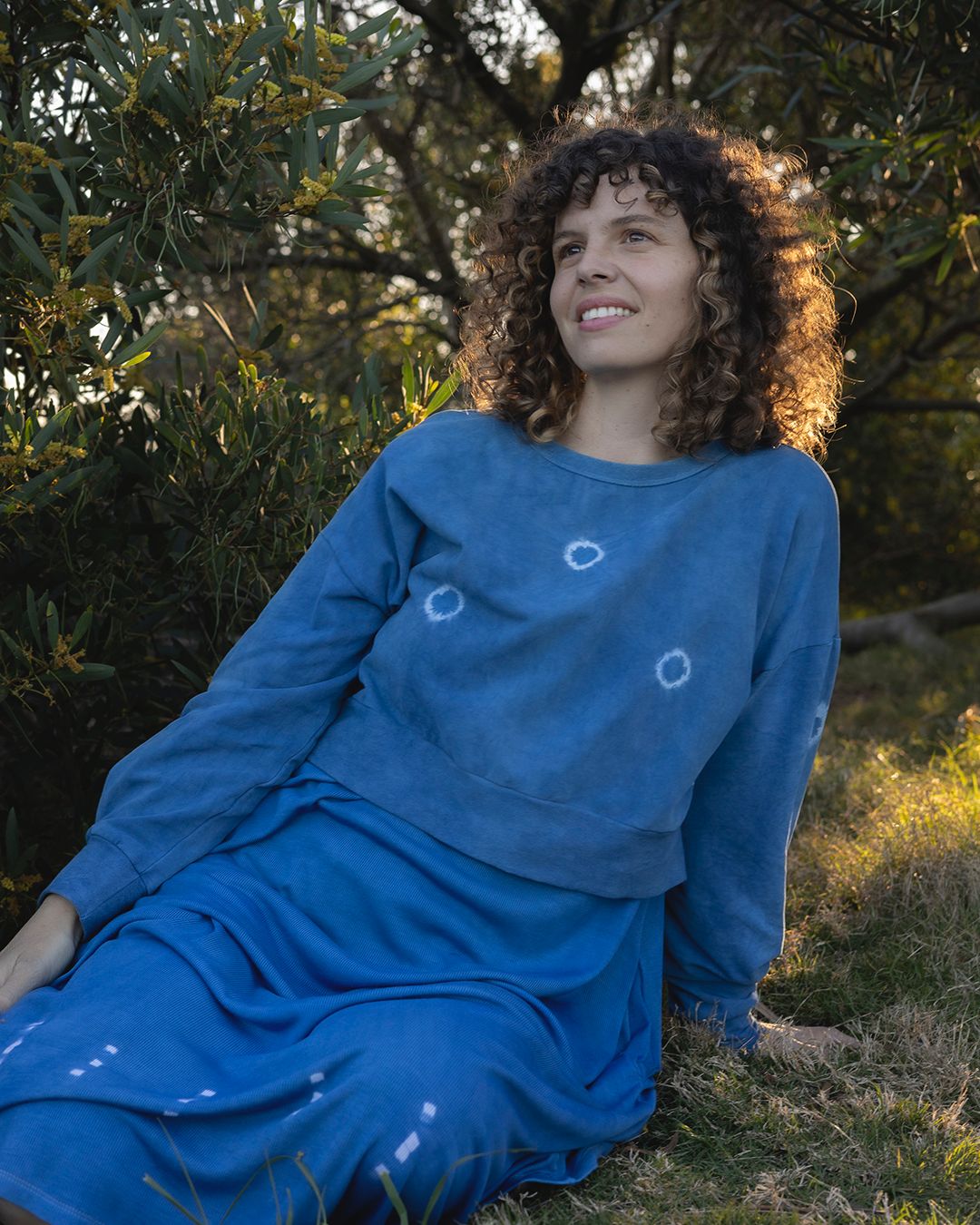 Sus técnicas de teñido e impresión botánica son características en las prendas que nos presenta haciéndolas exclusivas. También el uso de fibras naturales junto a un corte y calce en perfección nos conecta con la sensación de una prenda que vive y vibra como quien la tiene puesta.